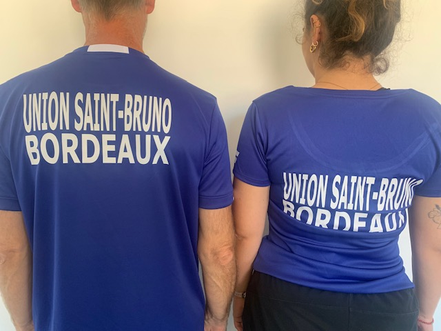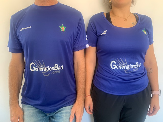 Le tee-shirt est de la marque Babolat et il est à la vente pour le prix de 25€. Il est bleu, floqué du nom du club, de l'étoile de l'Union St Bruno et de notre partenaire "Génération Bad".