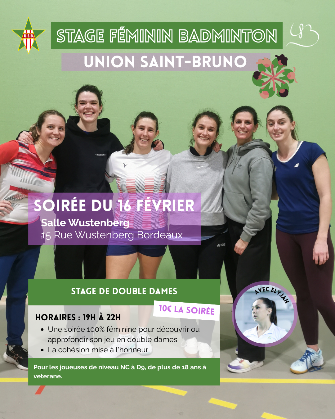 - 16 février avec Elyjah. Stage Féminin. 10€ l'inscription. Infos et inscriptions : ici