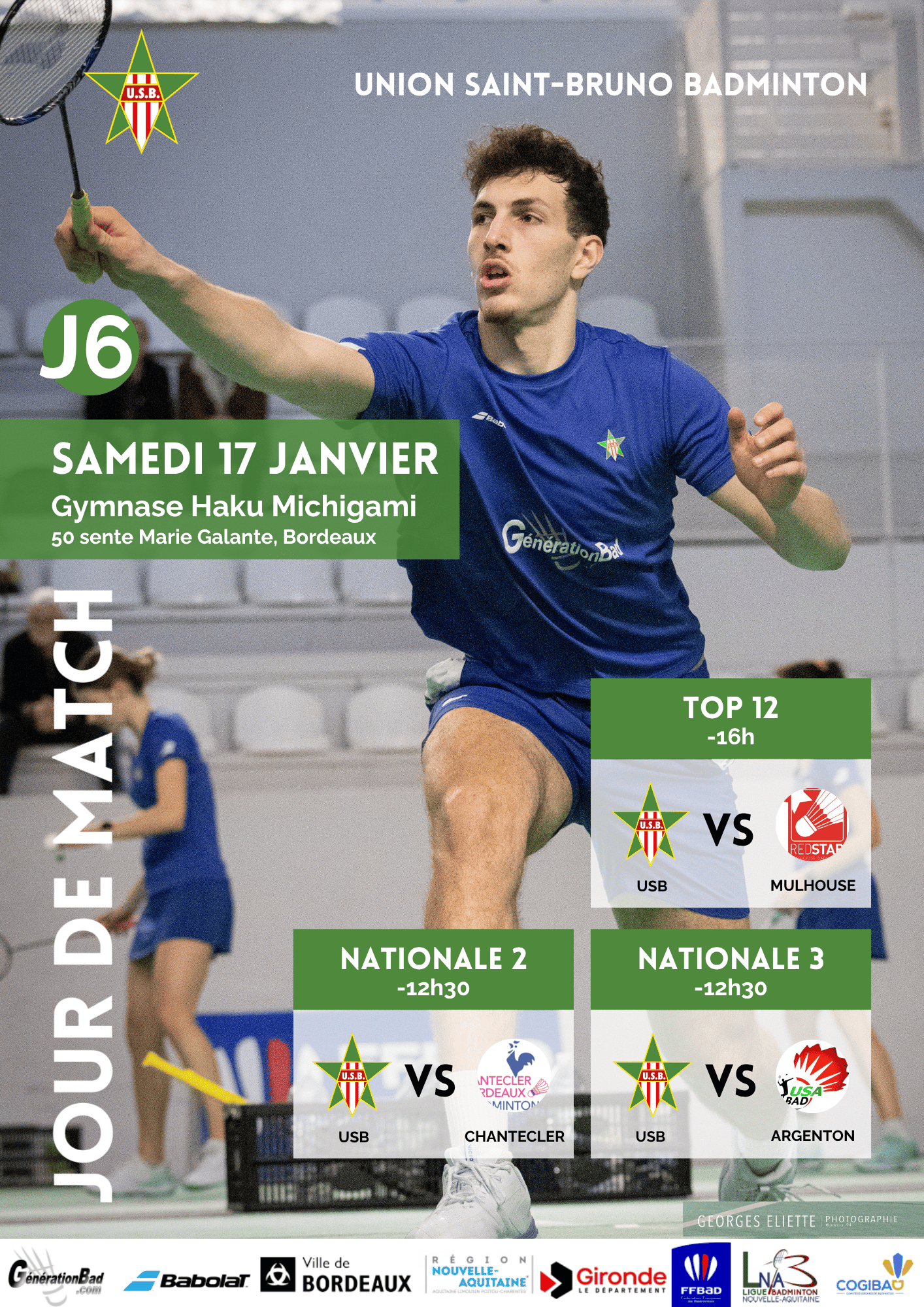 Samedi 17 janvier retrouver nos 3 équipes de National pour la 6° journée !