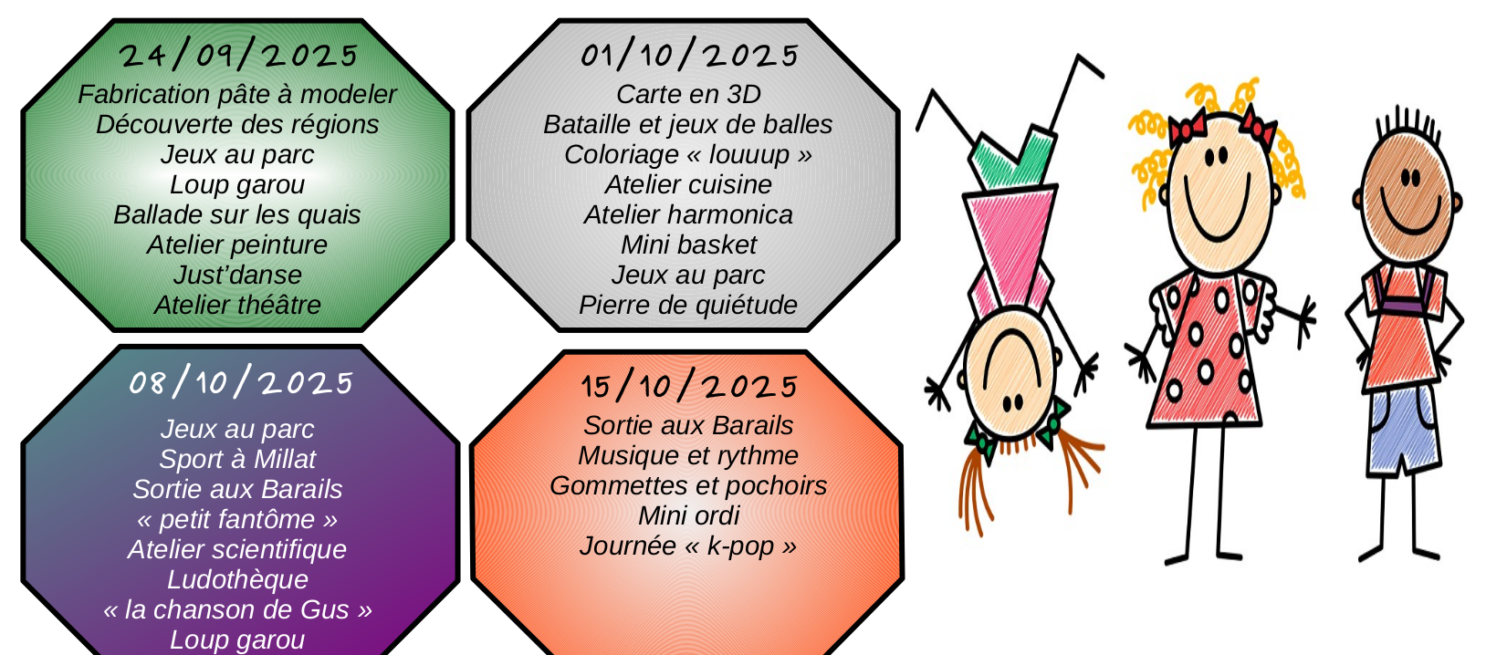 Pour vous organiser et en parler à la maison , voici le programme du mercredi 24 Septembre au mercredi 15 Octobre :