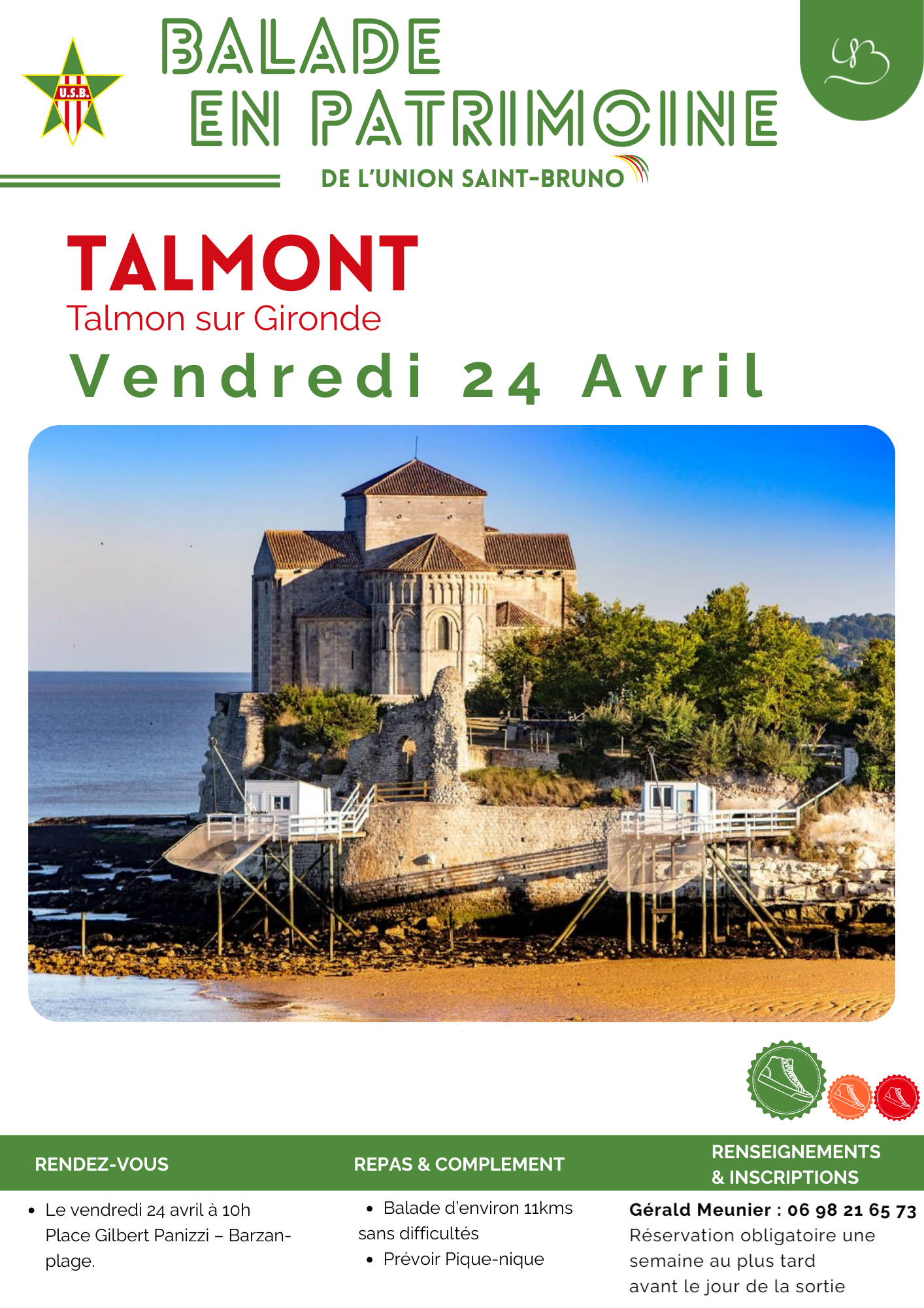 - Chèque à l'ordre de l'Union Saint-Bruno à payer au plus tard le jour de la sortie.
