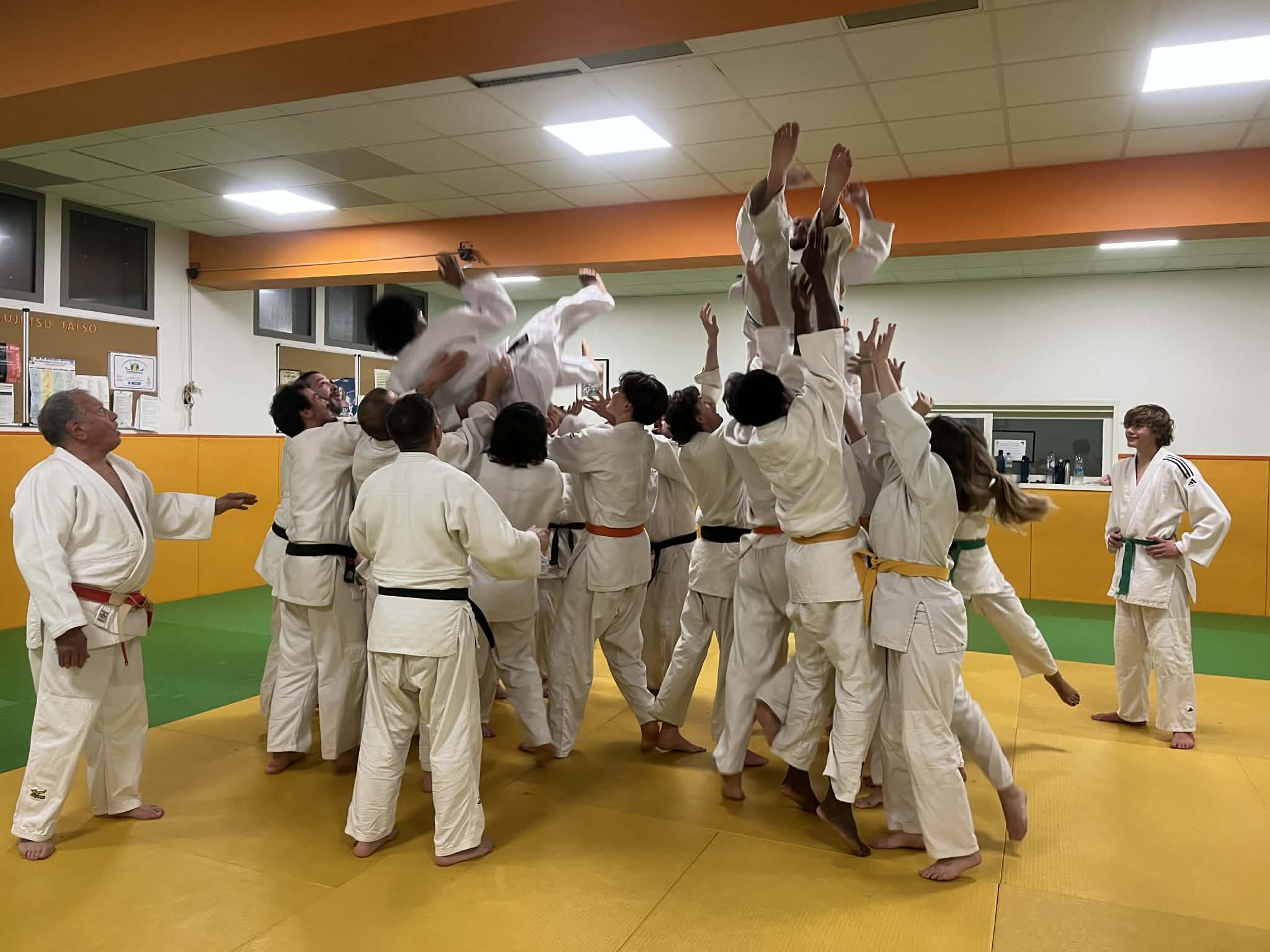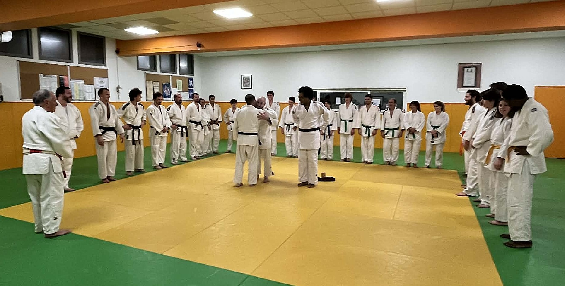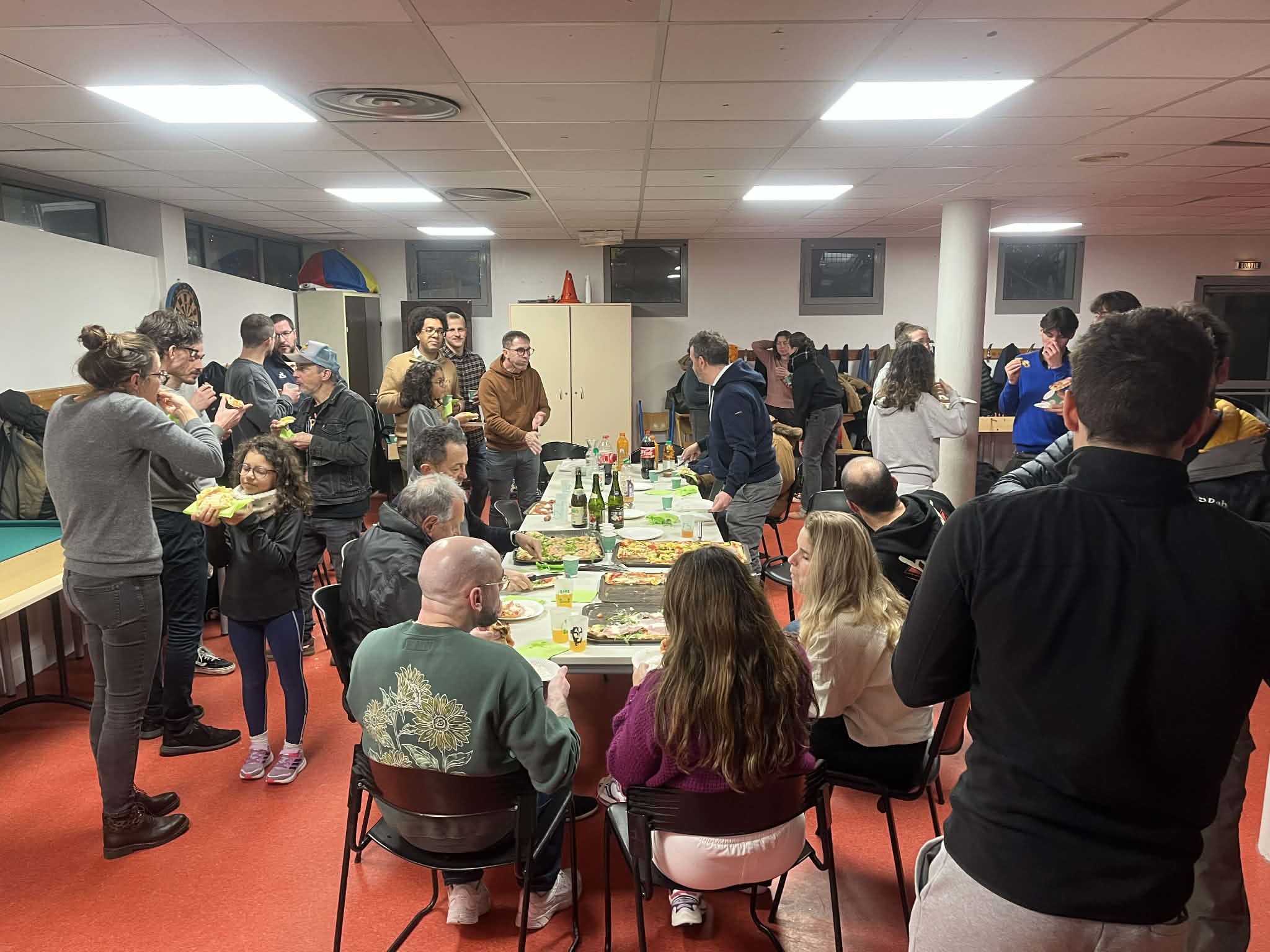 Après la remise, les deux promus ont été célébrés comme il se doit par leurs partenaires de tatami... Puis la soirée s'est prolongée au foyer de l'Union St-Bruno, autour du verre de l'amitié et des toujours succulentes pizzas de Cristian !