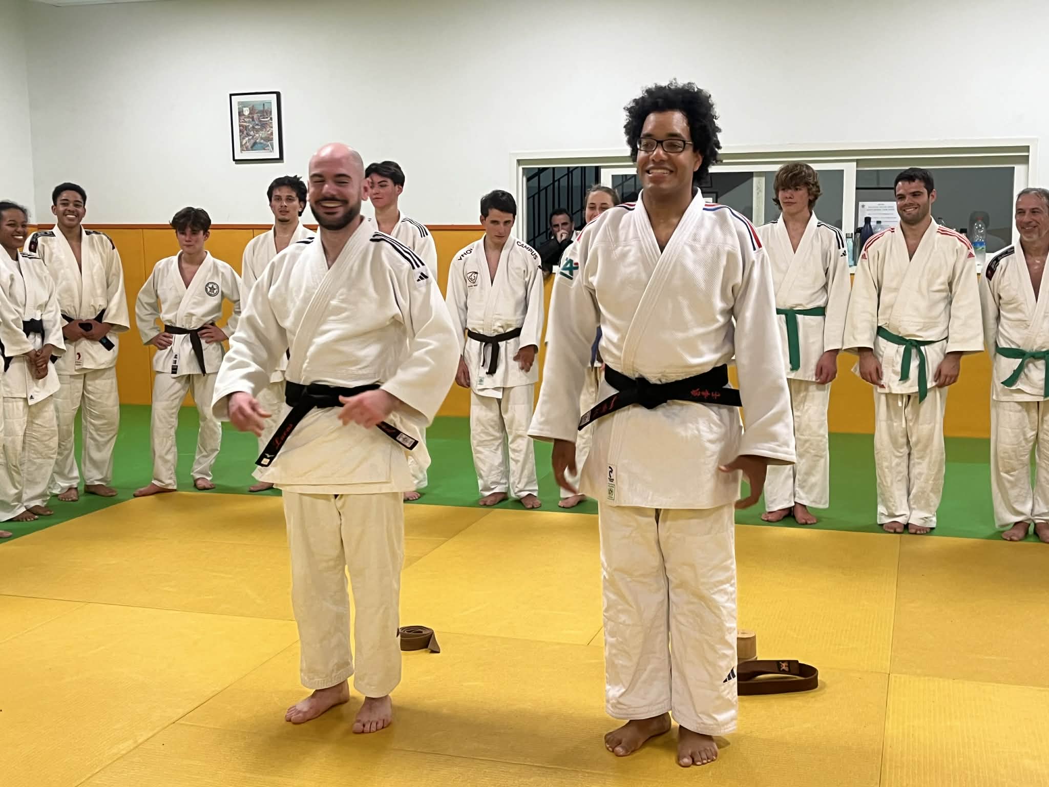 Jean-Christophe a rejoint notre section en septembre 2023, après 21 ans sans pratiquer ; Thibaud nous a rejoints en 2022 après plus de 10 hors des tatamis. Leur motivation et leur travail leur ont permis d'accéder à ce fameux grade chargé de valeurs. Ils sont désormais des ambassadeurs de nos disciplines ainsi que des exemples pour les plus jeunes.
