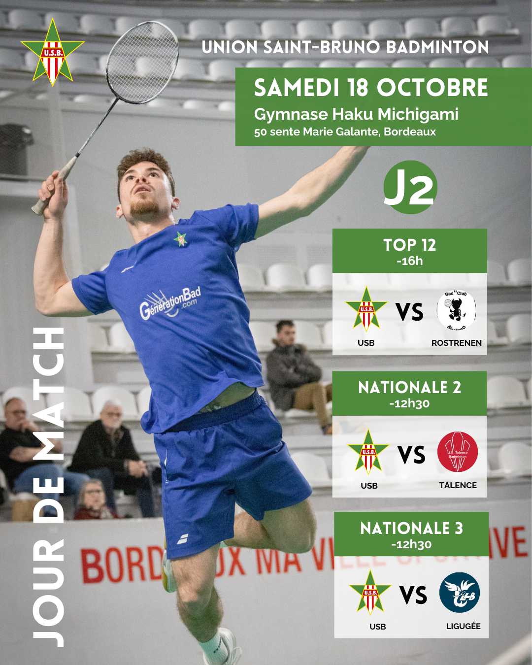 Samedi 18 octobre, première journée de TOP 12 à domicile pour l'équipe 1 de Badminton de l'Union-Saint-Bruno ...