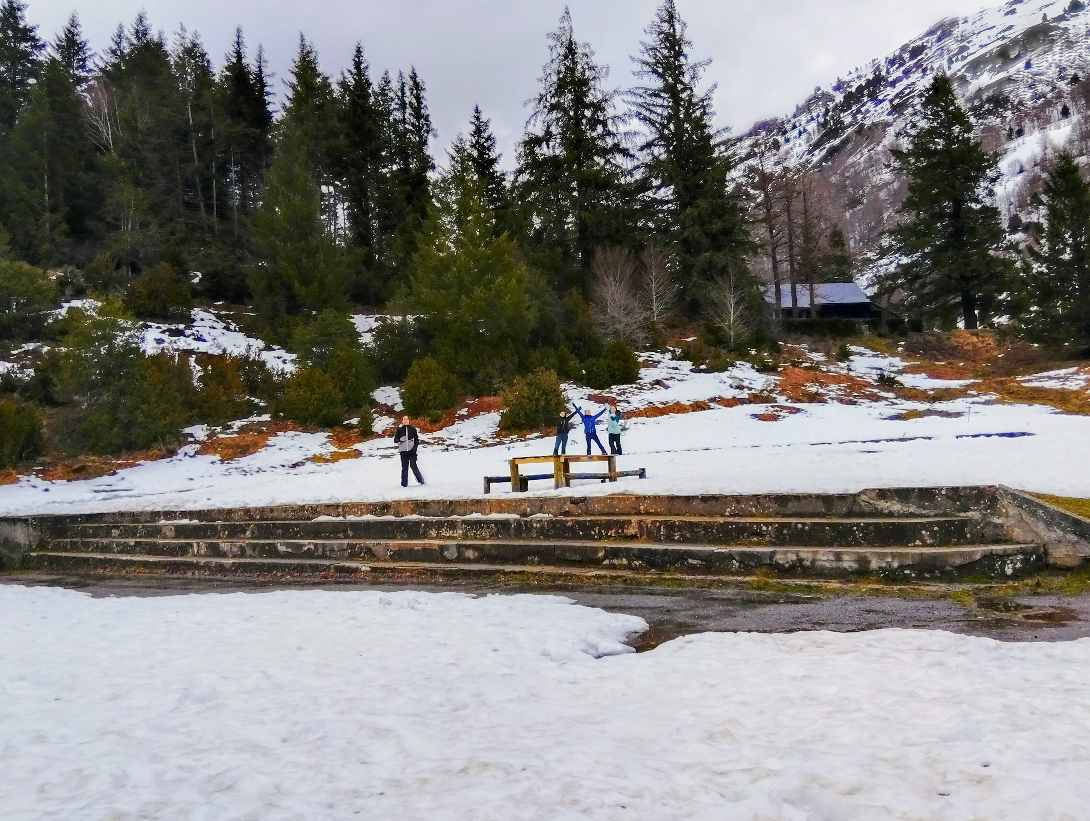 Pour ceux qui restaient au chalet, matinée sportive dans la neige et le vent, pour un projet igloo. Une fois n'est pas coutume, notre édifice 2026 restera au stade de projet... malheureusement l'ambition de construire un abri de neige XXL pouvant accueillir les dix jeunes étaient trop élevé. Peut-être aussi que chacun n'a pas donné le même investissement à cet exercice toujours très physique. L'après-midi longue pause dans le chalet avant de ressortir une dernière fois pour se mouiller entre luge et bataille de neige.