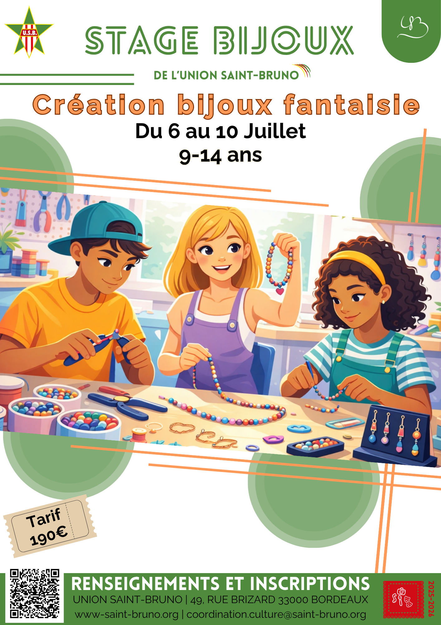 Paiement en ligne: https://www.helloasso.com/associations/union-saint-bruno/evenements/stage-creation-bijoux-fantaisie-juillet-2026