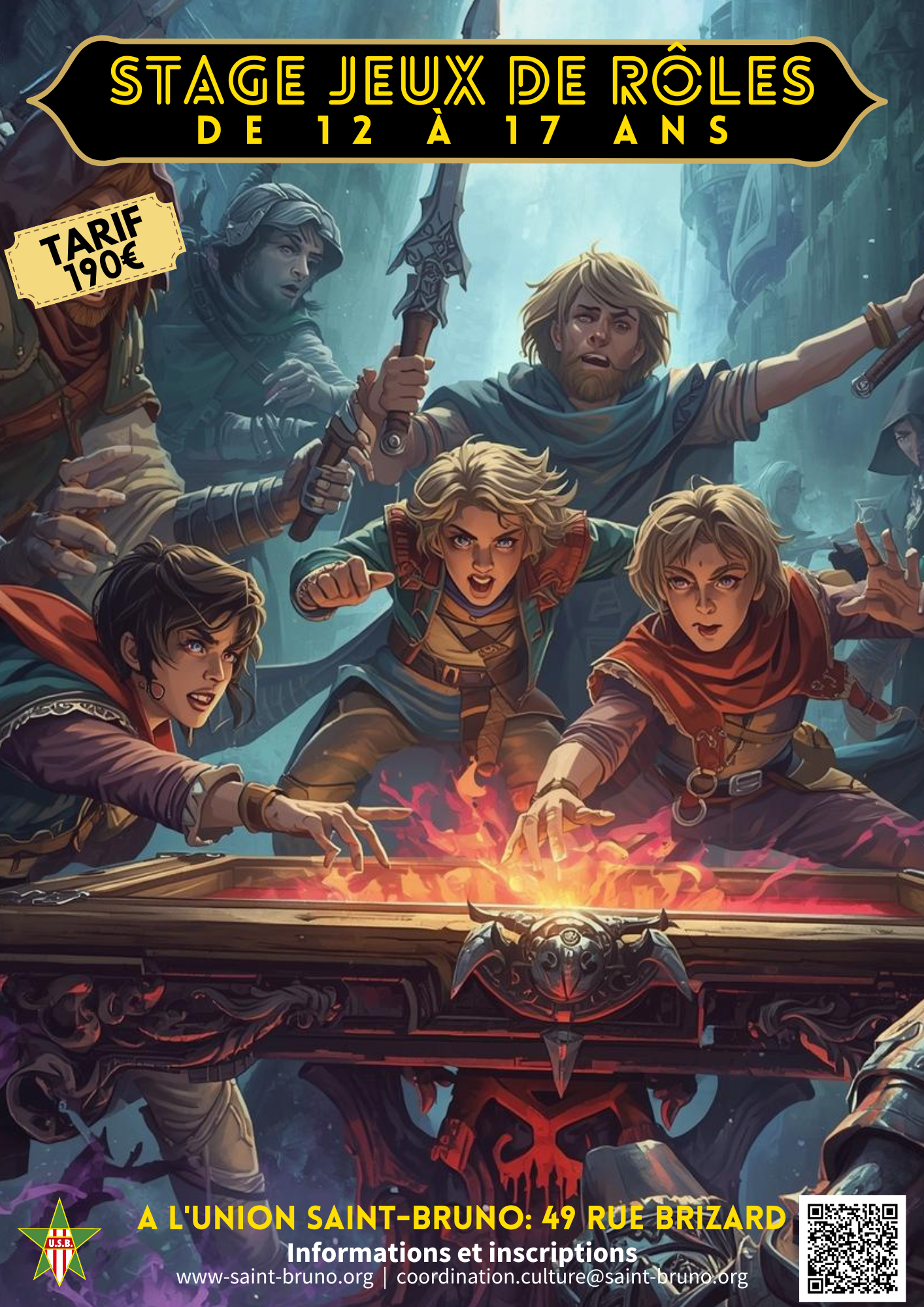 Paiement en ligne: https://www.helloasso.com/associations/union-saint-bruno/evenements/stage-jeux-de-role-fevrier-2025